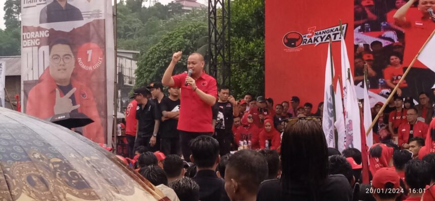 nyiurtv.com-Manado-sepuluh (10) Calon Legislatif (Caleg) DPRD Kota Manado dari Partai Demokrasi Indonesia Perjuangan (PDI-P) daerah pilihan (Dapil) Singkil mapanget melakukan kampanye di lapangan ketang baru Kecamatan Singkil, Kota Manado, Sabtu (20/01/2024)